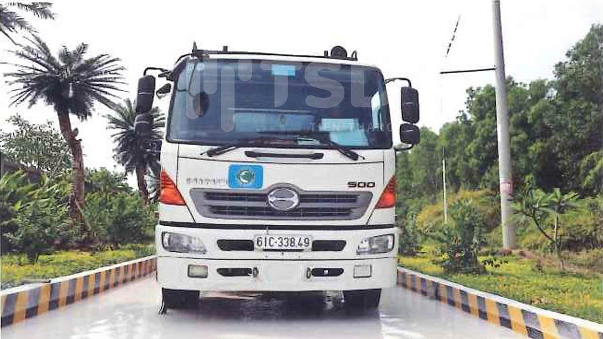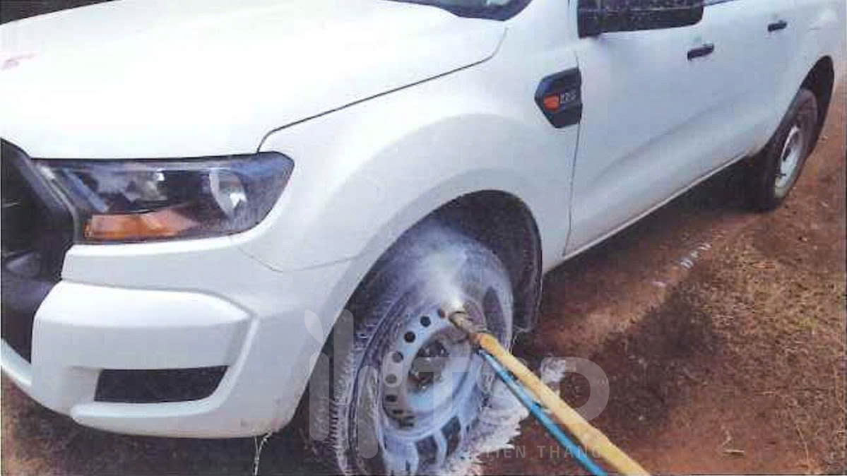 Hình 2. Phun sát trùng bề mặt xe trước khi vào trại